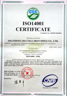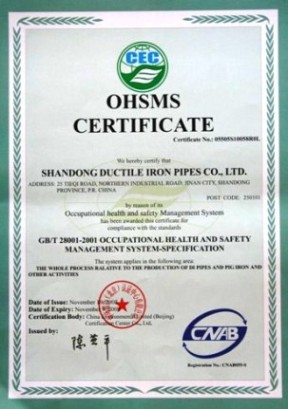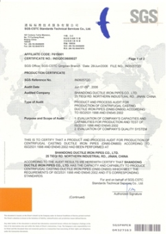 魯寶球墨鑄鐵管質(zhì)量證書(shū)